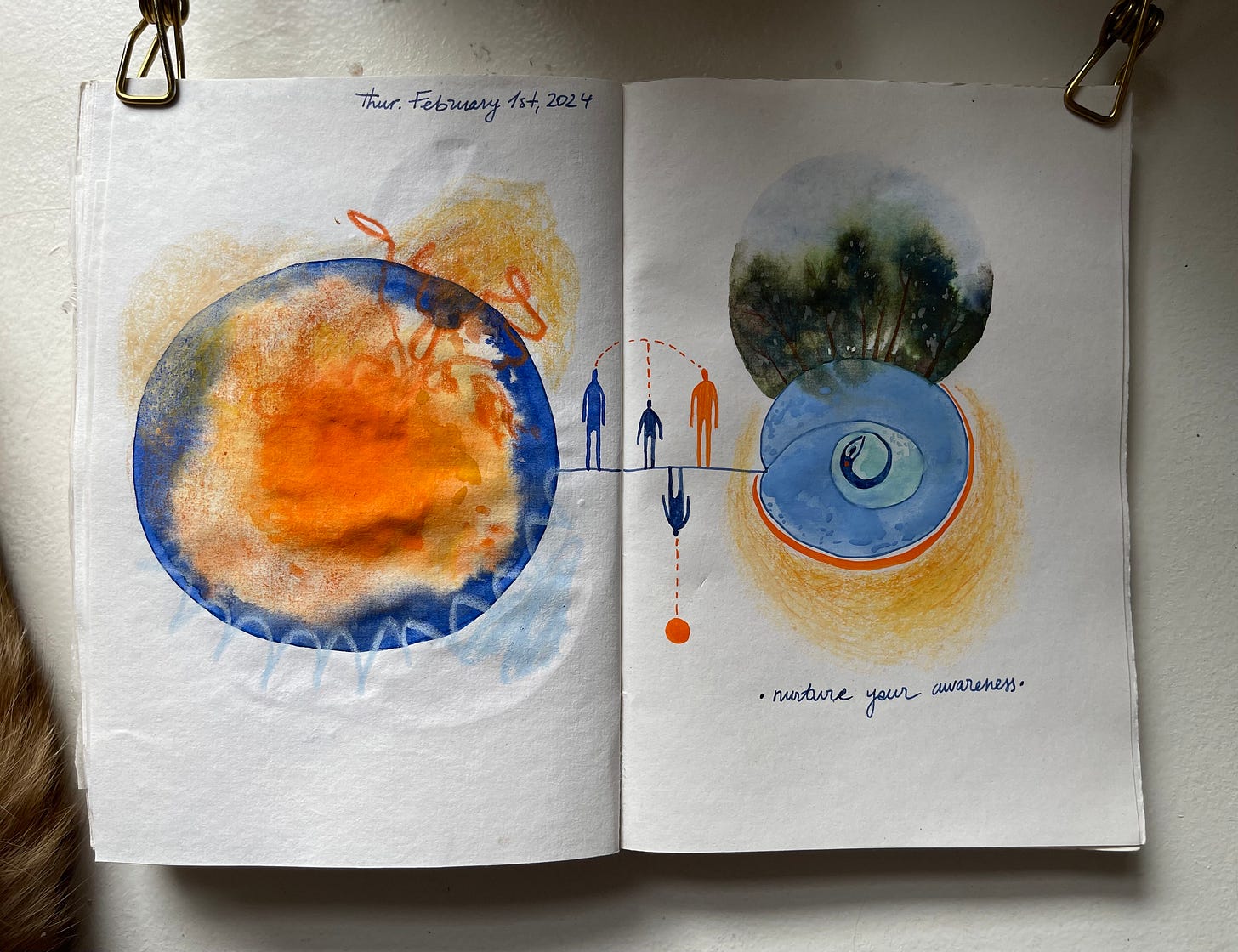 Then something happened, and time started racing with the speed of light. But I wasn’t ready to keep up with the race; I wanted to stay in the now of that sweet flow where my hands were covered in pastel dust and surreal images kept on landing on every surface I touched.